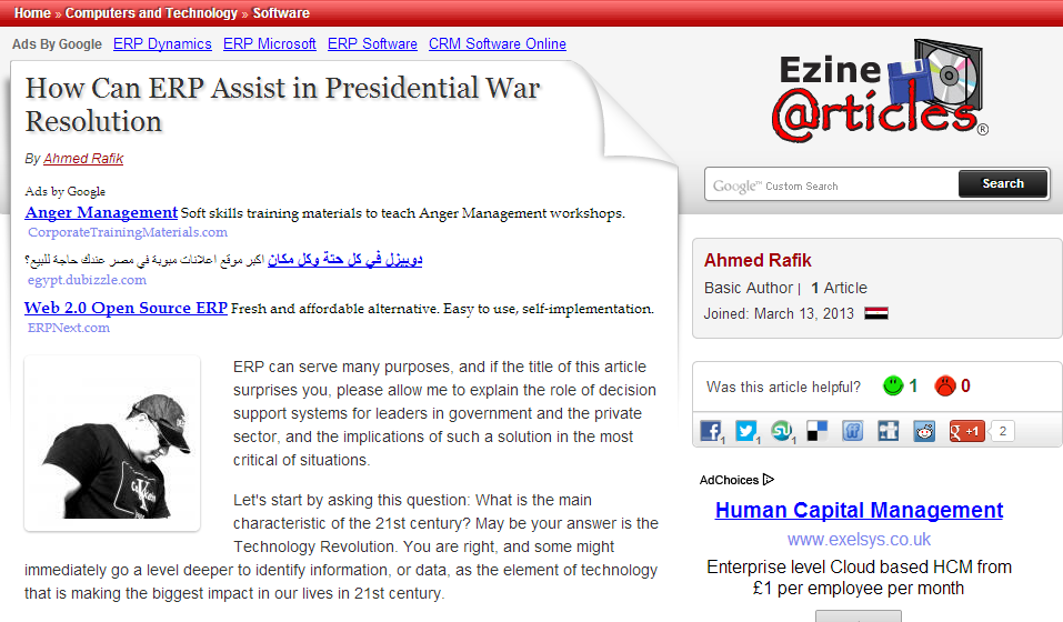 In this article, i illustrate how ERP affect Politics directly, and this is not only my point of view, but also it is what happened in our real world, Just imagine the relationship between both and then read this article, and you will know How your imagination will take you away and thinking of this fact. You can read this article directly published on Ezine@articles.