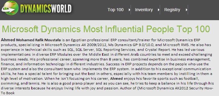 Congrats..Top 100 Most Influential People on Microsoft Dynamics 2013