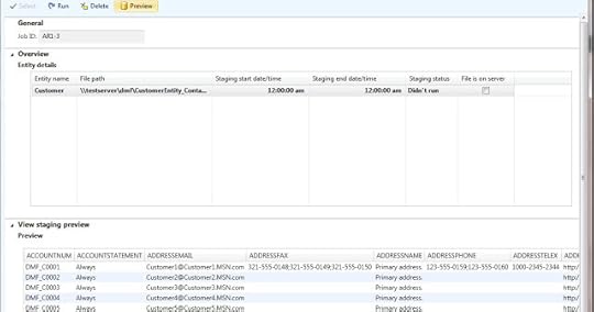 You can see sample files which are shipped with the DMF at <your installation drive\Program Files\Microsoft Dynamics AX 2012 Data Migration Framework Client Components (Beta)\DemoFiles\Delimited\> folder.We will use "CustomerEntity_ContactInfo" file for our example. Now the screen should look like this: