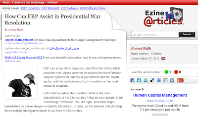 I would like to share with you these news, I become now an Expert Author on Ezine Articles Directory.We just published our first article in ERP field on Ezine Articles Directory, but we are going to publish more than 10 articles within 3 Months.You can review our articles from Here.