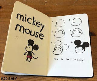 I tried to tap into those nostalgic feelings I had and started drawing more Mickeys - Mickey walking through  forest, playing with a toy steamboat, kicking a soccer ball. I filled a sketchbook with fifty or sixty ideas, and sent them to UNIQLO and DISNEY to pick from. The designers came up with four shirts, including one based on the little ‘How To Draw Mickey’ sketch I had made for myself. I re-drew cleaned up, nicer versions of the design on Bristol board.