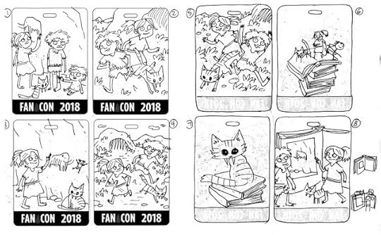 So the bad news is that after attending San Diego Comic Con for 15 years in a row, I won't be this year. The good news is that it means I'll be at the Arlington Heights Library Fan Con this Saturday, July 14! I'll be doing a drawing Q & A session, workshop, and signing books. I also got to design their attendee badge, for which I did a bunch of sketches. Which one did they choose to have me finish for the badge? You'll have to come to Fan Con to find out! Or if you can't come to Fan Con and still want to know I guess you can pester me next week until I post a picture of how the badge turned out...