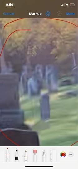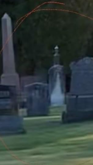 Behind the small grave you can see a young boy’s spirit around the age of 10 wearing a white collar shirt, darker hair. There looks to be a male spirit standing behind him.