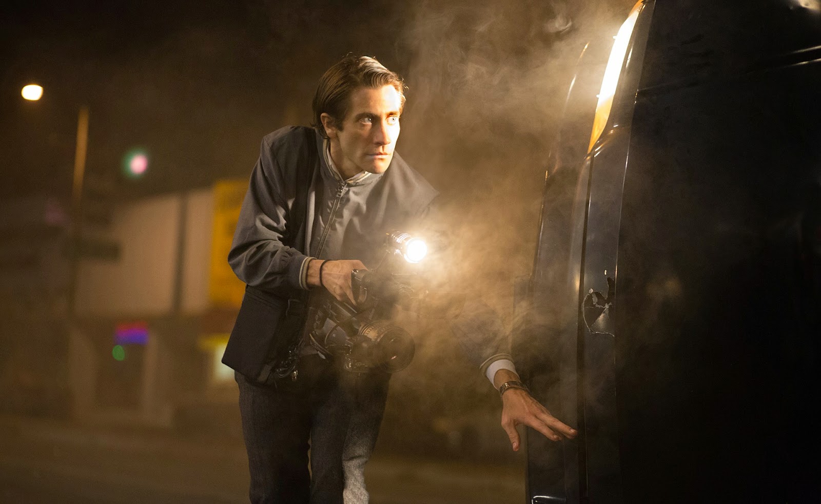 Jake Gyllenhaal’s Lou Bloom is an instant classic scuzzball character. He echoes the memorable sociopaths played by Robert DeNiro in his prime (Rupert Pupkin in The King of Comedy and Travis Bickle in Taxi Driver), but he’s less sympathetic than either of those. A parasite on the prowl, Bloom soon fixates on a career ideally suited to his amoral loner/ go-getter character—as a crime journalist during L.A.’s night hours. He listens for crimes in progress on his police scanner, speeds to the scene, and then angles for the most shocking, risque footage he can possibly get away with.