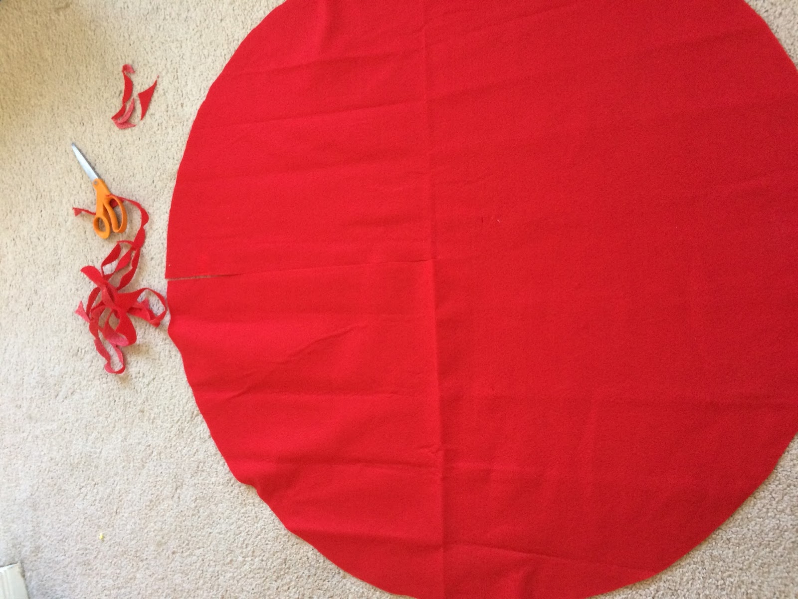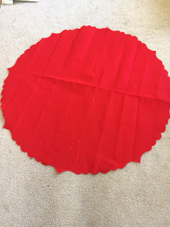 My tree skirt had scalloped edges, so I cut it off to a smooth circle.
