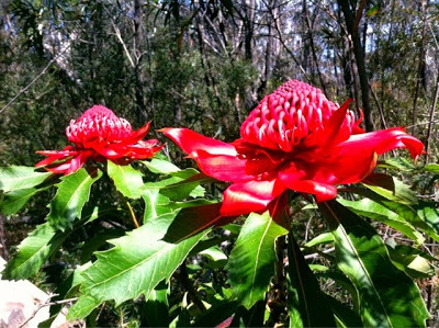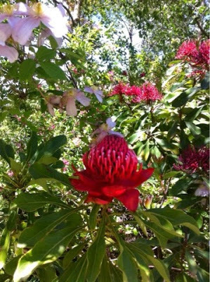 For example, I did not know that the State Flower of New South Wales, the Waratah, would be in full bloom at this time of year. And there it was, popping up proudly and sporadically, surprisingly bright, red and vibrant against the muted eucalypt greens of the Australian bush. Wow, just wow!The area around Pinerolo children's book cottage in Blackheath was breathtaking.