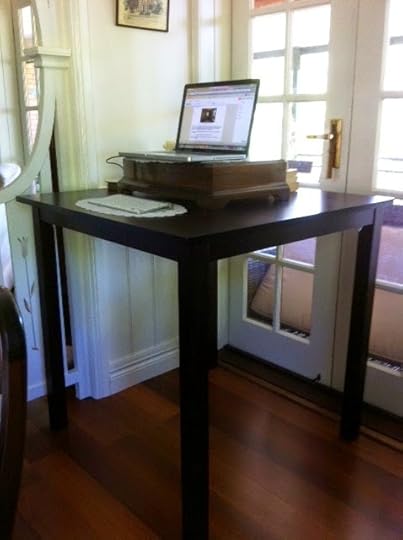 So, with so many great thinkers to vouch for the benefits of standing up to write, a while ago I purchased a standing desk for myself. (You can see in the photo I'm writing at it now.)