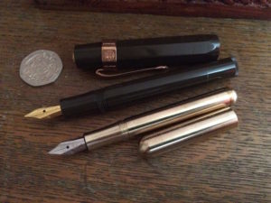 Of course notebooks are no good without pens, and as I’ve blogged about before, I particularly love fountain pens. The ones I’m using with my personal journals are by Kaweco: a Lilliput in eco (lead-free) brass, and a Classic Sport in limited-edition dark brown. I’ve photographed them next to a UK 20p piece (slightly smaller than a US quarter), so you can see how tiny they are!