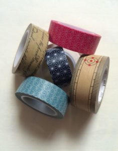 Finally I decided to buy some washi tape for brightening up my journals – it’s a type of decorative Japanese paper tape with a similar feel to masking tape, and very popular with scrapbookers, card makers and other crafters. The choice available locally was very limited, so I ordered several designs from Lovely Tape.