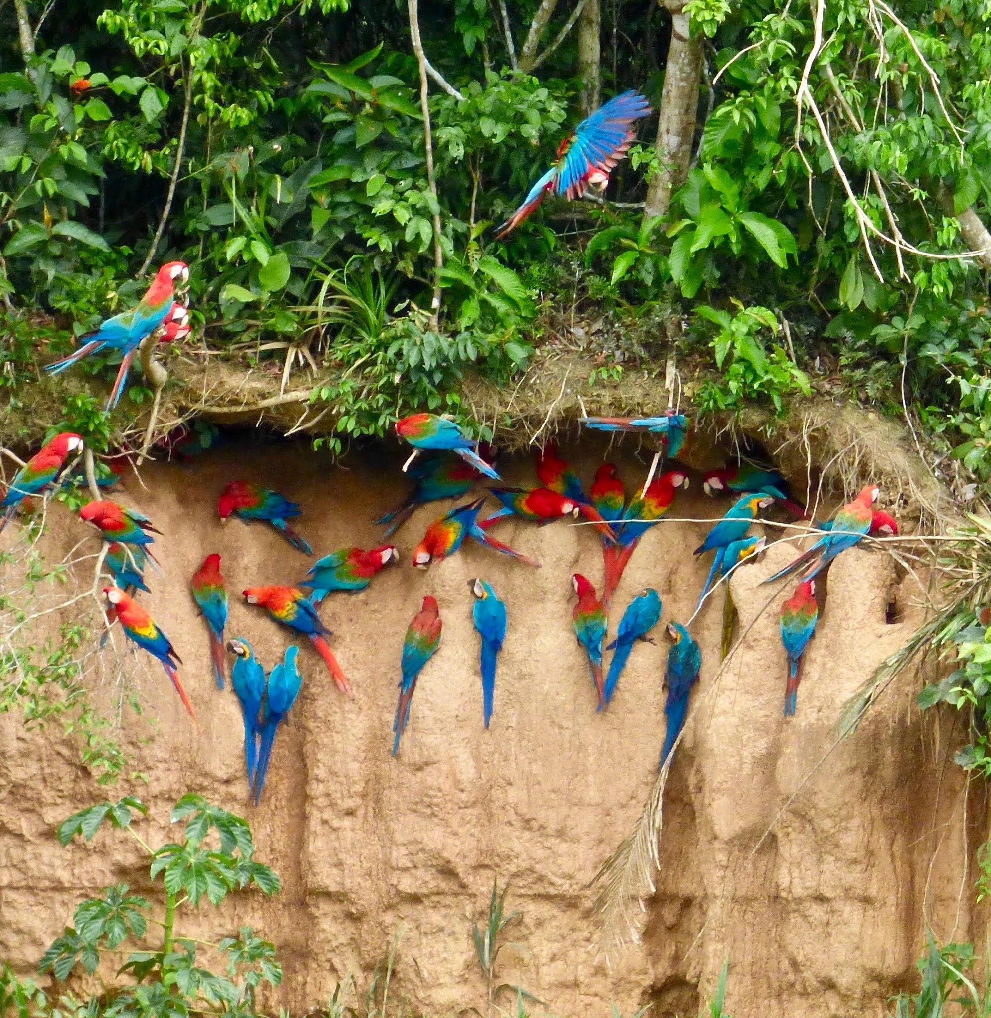 Macaws at the clay lick near Tambopata Research Center (photo credit Brian Fraser)