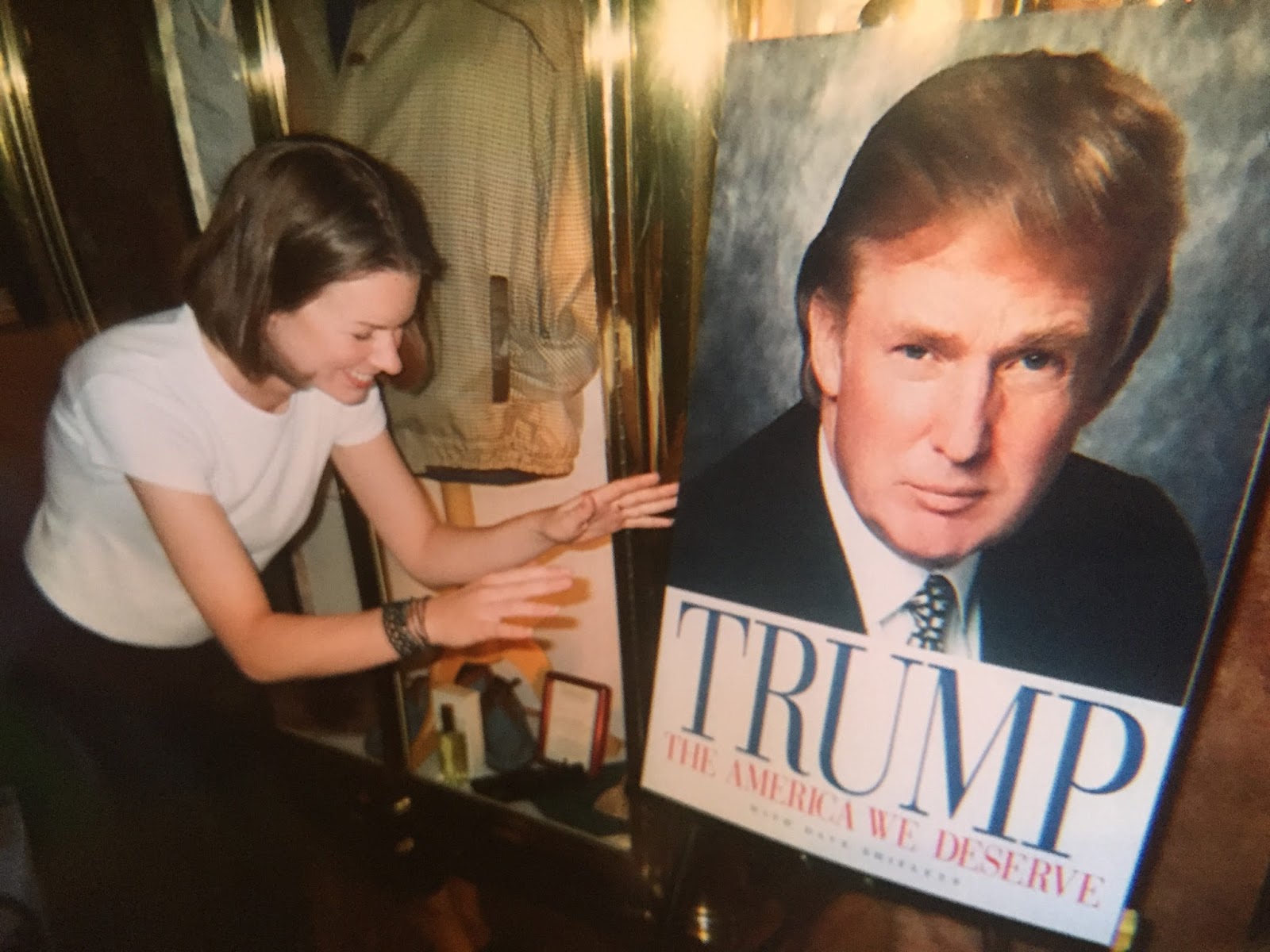Fast-forward seven years, and I was in the thick of the dot.com boom, traveling across the country and literally around the world (10 countries, 5 continents back to back) doing consumer research for an internet consulting gig. It was that project that took me back to New York, where I of course had to make my pilgrimage to Trump Tower. Yes, that is me bowing down to a poster of Donald Trump in 2000. I still loved him and considered him a role model.