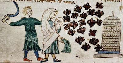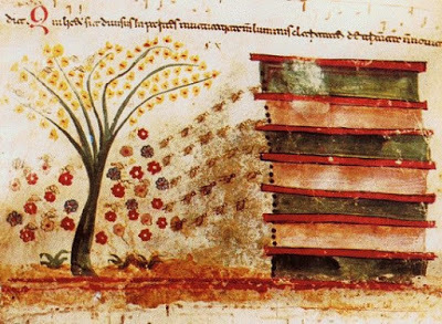 I HAVE NO IDEA but it's interesting that in the 10thC different types of honeybee queen and their virtues were observed and discussed. Just by choosing big yellow queens in preference to stripey dark ones, humans were breeding honeybees selectively long before theories of evolution were formulated. There is still huge debate over which strains of honeybees are best. My last purchase included a Frere Adam queen, trademarked for the famous beekeeper monk who worked at Buckfast Abbey from 2019 and who created this cross-breed of Italian bees with African bees.