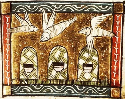 FALSE The medieval notion that bees were born from worms in ox or calf corpses was reported as fact by such luminaries as Augustine (5thC CE) Isidore of Seville (7thC CE). FAKE news, people! I bet confusion between maggots and bee larvae led to the story. However, worker bees DO take 21 days to develop from egg to hatching, so this does show good beekeeping knowledge! (24 days for a drone (male bee) and 16 days for a queen).