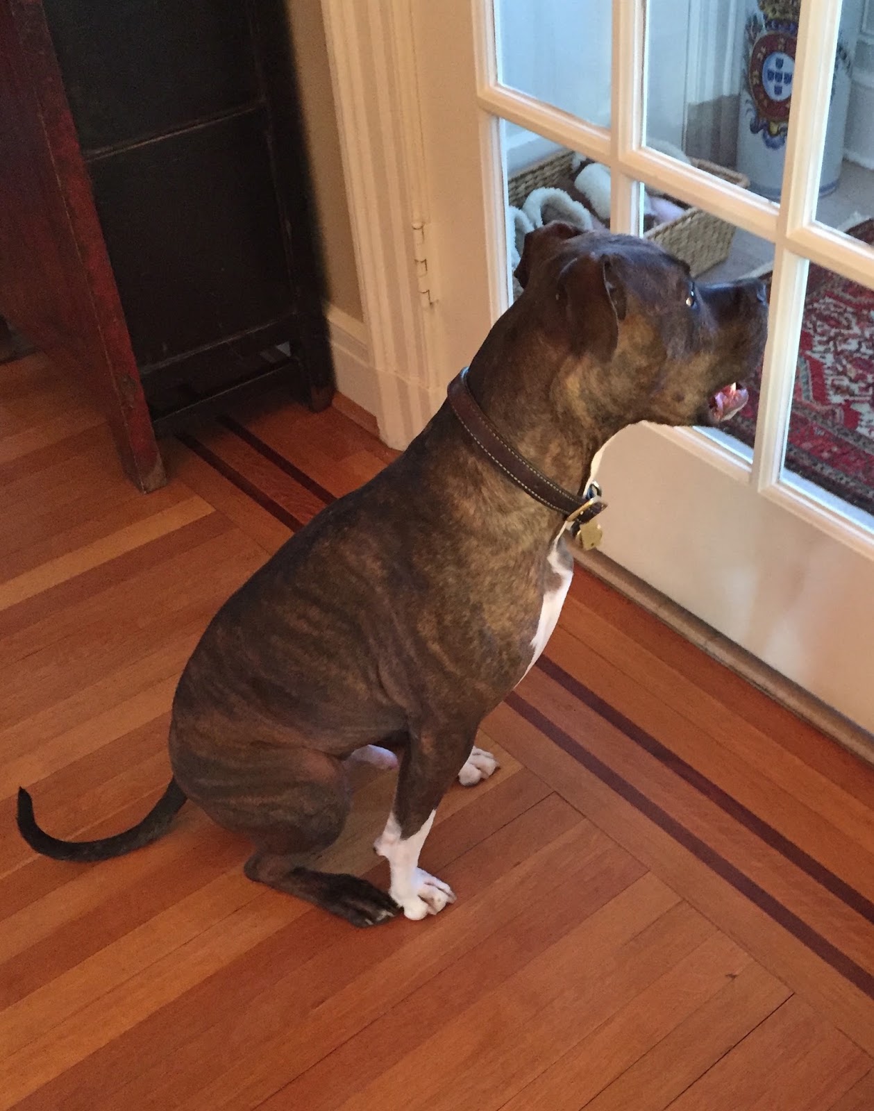 But forget about driving: Styles is at his take-charge best when we go for walks, particularly when we’re at the Milford house in PA. He pins his ears back and puts those muscular pitbull shoulders into it like he’s Buck in The Call of the Wild pulling a sled across the Alaskan tundra.