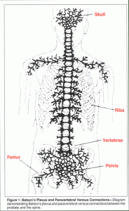 He taught me about a particular network of veins called Batson's Vertebral Plexus. I remember studying this in school but the implications did not strike me at the time. Batson's plexus is a venous channel which directs blood flow from the pelvis/sacrum back up the spine and up to the brain.