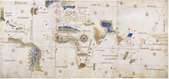 Image: the Cantino planisphere (1502), depicting the Tordesillas Merdian, splitting the world