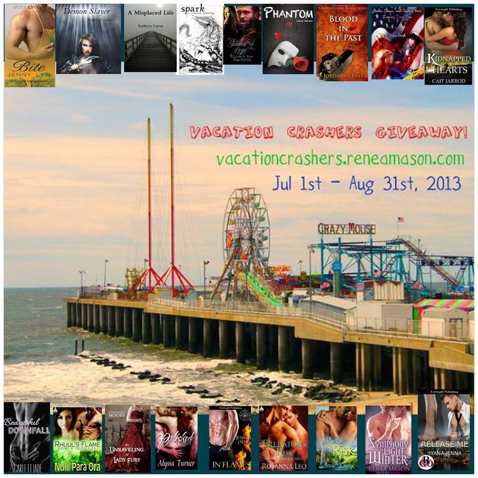 I want to crash your vacation, along with a ton of other awesome authors. We've joined up to bring you some terrific prizes including books, swag and lots of gift cards. The grand prize winner will walk away with a kindle and a $75 Amazon Gift Card. All you have to do is show us some love. Share a picture of yourself with one of our books that you're reading on your summer vacation or stay-cation. For me, you can use any of the books in the Dark Musicals Trilogy. Both print books and the eBook cover on your kindle are fine. Just join the Vacation Crashers Photo Contest on face book where you can share your photos and fill out the rafflecotper form below. There are a few other options for entry in addition to posting photos, check it out even if you don't have any of the books already.