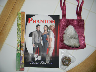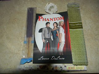 Its almost Halloween and Kimba the Caffeinated Book Reviewer is celebrating all month long with her "Things That Go Bump on the Night" giveaways. Today Phantom is part of the party. While technically, it isn't a Halloween story, one of the pivotal scenes in the book does take place at the Halloween dance which I did as spin off the masquerade ball in the original Phantom of the Opera. You'll have to read the book to find out more, but in the meantime, be sure to head over to Kimba's blog and enter the giveaway to win a Phantom Prize pack! It includes a signed print copy of Phantom, crystal pendant, rough crystal point, geode, two boxes of incense, and incense holder.
