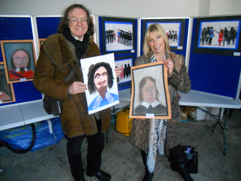 Professor Ronald Hutton and Kit Berry judging Beechcroft School's art work