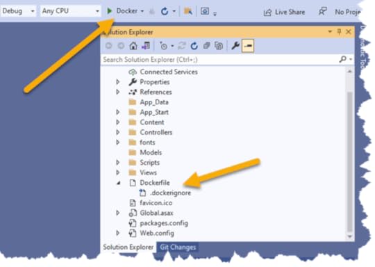 Figure 2. Changes in Visual Studio after adding Docker supportYou can test the support by clicking the Docker button. This will build the container, run it under your local Docker Desktop, and then open your default browser. This time, rather than going to a localhost URL you will instead go to an IP address, and if you compare the IP address in the URL to your local IP you will see that they are not the same. That is because this new IP address points to the container running on your system.