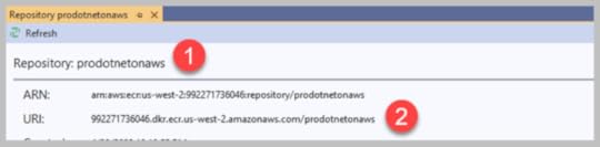 Invoke-Expression $loginCommand.CommandThis refreshed the authentication token into ECR. The remaining commands are based upon an existing ECR repository. You can access this information through the AWS Explorer by clicking on the repository name. This will bring up the details page as shown in Figure 5.