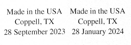 I had previously seen that KDP black-and-white interiors seemed to be laser-printed, but Theft seems to be inkjet printed, more like what IngramSpark does. Here’s a look at the print-on-demand information from the last pages of both books, again with Theft on the right: