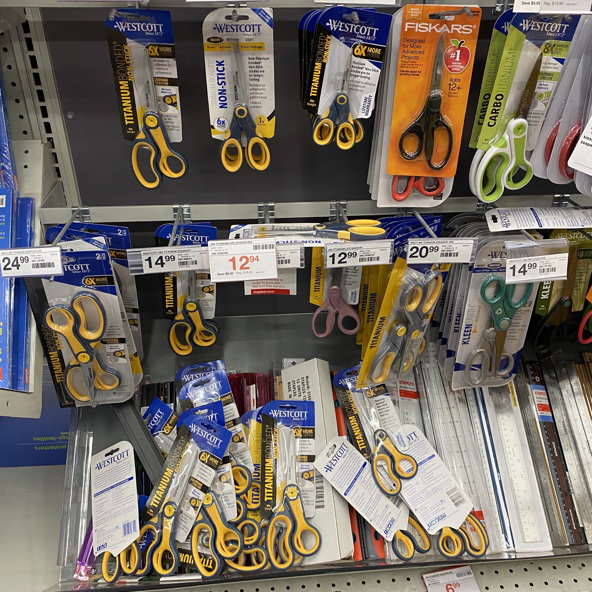After a couple debates on which folders were the right ones and searching for a "stylus pen" we moved on to scissors. Scissors: A dozen different types.