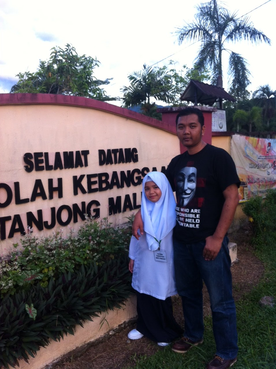 Hari ni, hari pertama Fateem darjah 1. Kelas 1 Hijau. Sekolah kebangsaan Tanjong Malim.