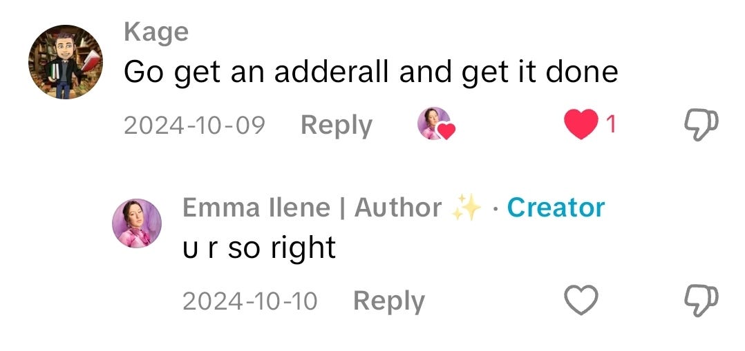 Soooo today I’ll be introducing myself and talking about writing! More specifically, the difficulty of carving out that time to write when you’re juggling mental and physical health. This, given the subject of this newsletter, is ironic since finding the time to sit down and write this was a challenge in itself! Without further ado, welcome to a newsletter that hopefully makes you say “emma wrote what?” *ba dum tisss*