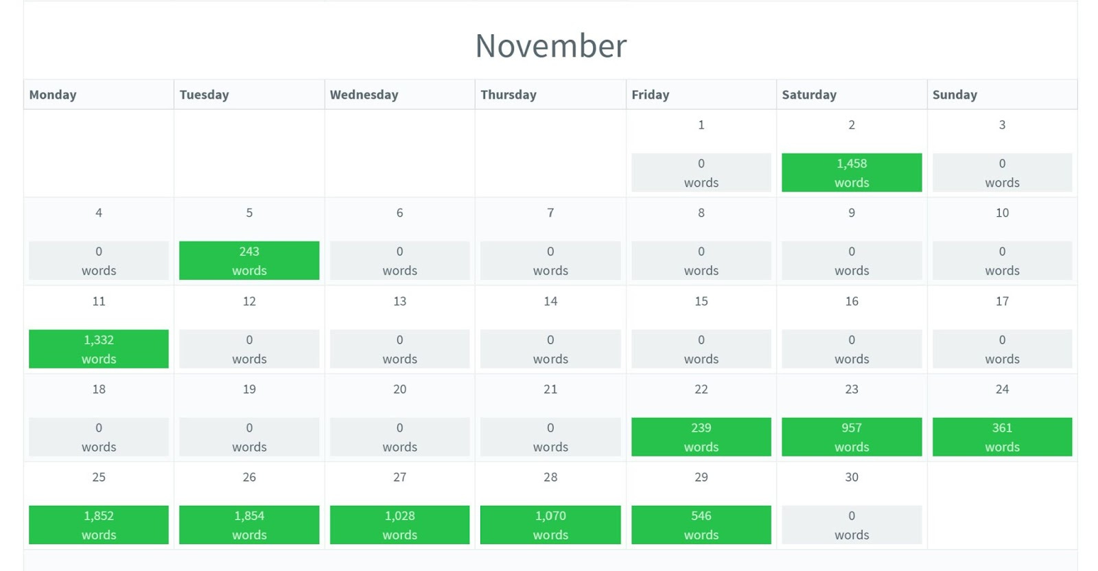 November: 10, 940 words