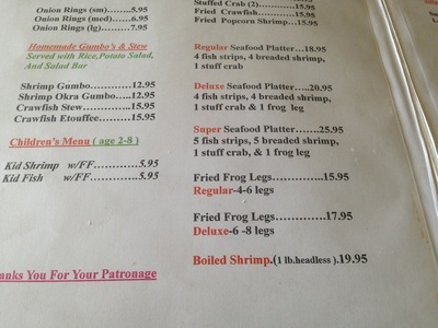 Frogs Legs...... Some of the places Erin would have seen visiting New Orleans and surrounding areas