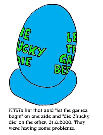 Unlike this hat.The whole hat thing is probably too convoluted and silly to explain, but I guess it is ultimately central to this blog since it is Hatboy’s Hatstand and I am Hatboy (as well as Chucky, yes, and Edpool…), so … sure. This could be considered part of the blog’s very reason for being. At online parties back in the late ’90s and early ’00s, one was expected to wear a hat. Actually it was just one party really. The Contro Party. Yeah, that name is probably familiar too. It’s all connected, man.