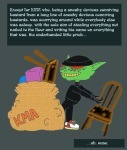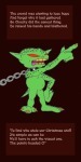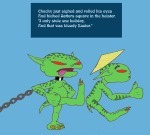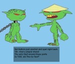 From the monkeyhouse bestiary. I really did make a big fuss over him poaching topics from a Usenet thread I made. It was a different time.KMA – Common names: KMA, KMA the Thief, The Thread Stealer, The Lowdown Thief, KMA the Lowdown Thread Stealing Thief. Well known for: His collection of prize-winning daffodils, what do you think? KMA arrived some time between website updates while I wasn’t paying attention, but fitted into the community like a peenie into a hole in the wall. He became a well-liked regular, sent his photographs to DEBS, participated in a number of parties, and generally put his feet up. He is Australian, so it is more or less understandable that thievery and evil runs in his veins…this was demonstrated applaudably one dark afternoon when he snuck into the Contro Party, resplendent in his balaclava and suction-cup booties, and made off with an entire party conversation topic stuffed into a big sack with a $ sign on it. He took the conversation topic back to his pad, re-painted it, and posted it up as a series of five or six new threads, none of which made two hundred posts. The 1700 post-long (at that time) Contro Party, meanwhile, deprived of its nutrients, began to wither and die. ST. CHUCKY went absolutely spare for a short time, then got sort of cold and sarcastic, and promised sweet revenge in the form of a Bestiary entry. Aside from that, KMA fitted in rather well in the group, wallowing in the smut, laughing at the schoolyard humour, and delighting in the porn. Appearance: In the words of Constable Eddie from The Simpsons, “Classic burglar.” KMA is tall, thickset, with stubble on his chin, a scar on his cheek, a wooden leg, an eyepatch, a striped singlet, hooks for hands, and carrying that trademark sack with a $ sign on it. Hat: Balaclava, or a plain black beanie when rolled up for less formal occasions. Distinguishing features: Those daffodils again, idiot. Status: Sporadic.