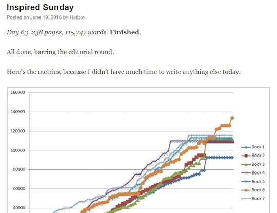 In case it wasn’t obvious from this introduction, and because I haven’t done a book-metrics post since .. ooh, I think since the heady days of The Final Fall of Man … let me just remind you how it looked when I finished, I want to say, Damorak. Back in 2016.