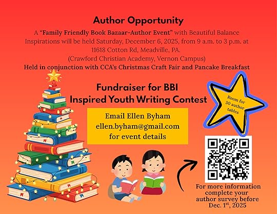 Authors, if you’re going to be in the Meadville PA area on December 6th, you may want to consider participating at the Family Friendly Book Bazaar-Author Event,��along with Beautiful Balance Inspirations.