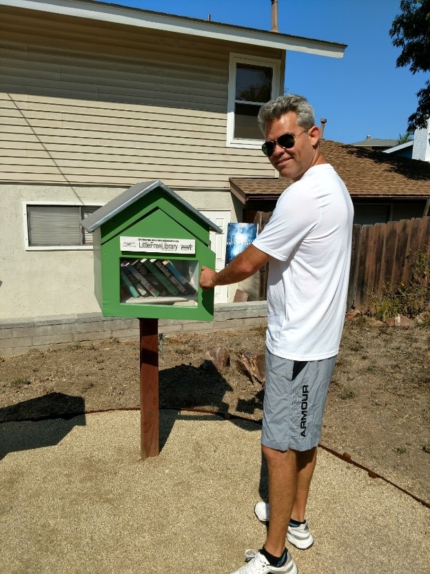 The city of Lake Worth in Florida has over 100 libraries for their population of 30,000 to enjoy – something for your community to aspire to perhaps? If you don’t have the time to start your own library right now, you can either donate financially through their website (your donation is tax deductible!) or you can use their world map to find a library near you and drop off some books. And that’s exactly what Chater Publishing did in September this year! Chris decided that he wanted to donate some of his self-published books. I pulled up the world map and realized that there were a handful of Little Free Libraries in the area that he had spent his formative years, so we decided to take a trip down memory lane. It was an inspiring and moving day because Chris hadn’t been back to that area since he left as a young adult. It was great to see all the old houses that he had played in with his friends, the curbs on which he had attempted (and failed!) some advanced skateboarding tricks, and the lockers at his old school where he had stored his first journals. He found it surreal to be back in the place which, without a doubt, had helped to sculpt his personality and ultimately guided him towards professional writing. He felt proud to be donating books that he had personally written, and it felt strange for him to think that his old teachers, school friends or their children, depending on their age, might pick up and read his books. And, to me, the best part of all: he left a little note in all the books in the hope that it might inspire the next generation of writers to take the plunge and follow their dreams, just as he has.