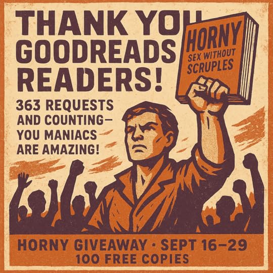 100 Free Kindle Copies of Horny: Sex Without Scruples — Goodreads Giveaway Live Sept 16–29