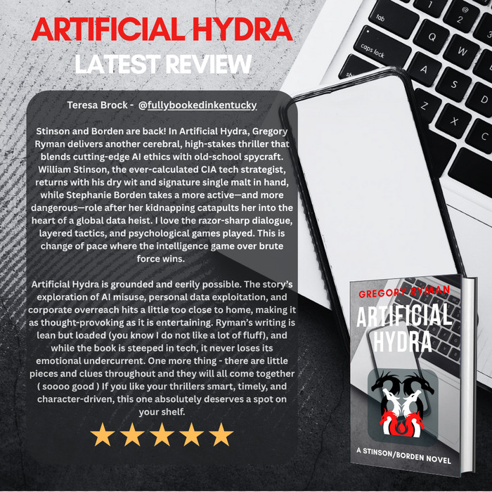 Stinson and Borden are back! In Artificial Hydra, Gregory Ryman delivers another cerebral, high-stakes thriller that blends cutting-edge AI ethics with old-school spycraft. William Stinson, the ever-calculated C" Read more of this review »