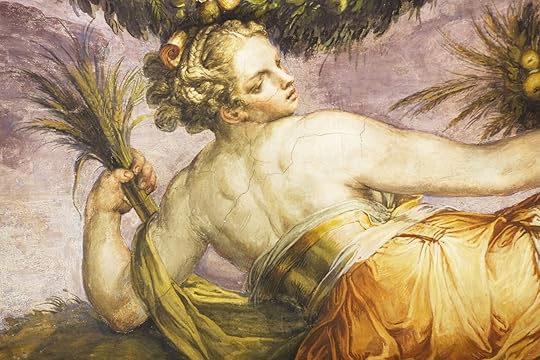 Old fresco with beautiful woman from Palazzo Vecchio in Florence