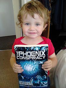 (Pictured: The young child of a past winner shows off the book his dad won. Posted with permission.)   Like I did for The Phoenix War, I am holding a contest to give away a free, signed, limited-print paperback version of one of my books to whoever can come up with the best predictions for The Phoenix Darkness. The predictions will be judged off two criteria: (1) accuracy, and (2) number of correct predictions (I am limiting it to a maximum of three). If many of you enter then multiple winners