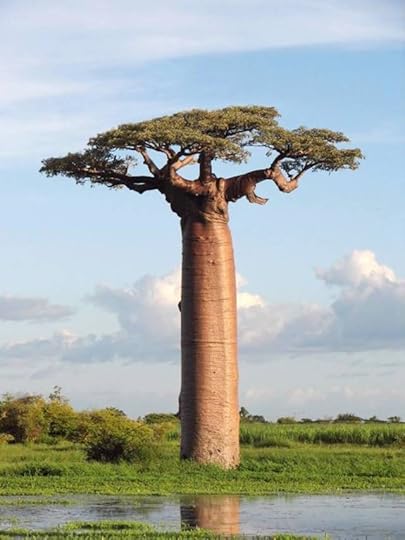 You have to admit, this is a very weird looking tree, the Baobab. There are six species in Madagascar, two in Africa, and one in Australia. They inhabit flat, arid, low-lying regions. The trunk of this tree can absorb and hold an enormous amount of water for an extended period. The trees are deciduous, as they lose their leaves and go dormant for part of the year during the dry season, which starts in the fall and extends over the winter in their native lands. They have long lives – over a thousand years potentially. They can only grow in deep tropical environments, as even a temperature of fifty-four degrees F is too low for them. Mythologically, the story of how they got their peculiar shape is that “the devil plucked the baobab tree out of the earth, turned it upside down, and jammed it top first back into the ground, leaving the roots in the air.”