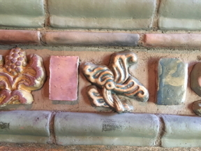 Mercer tile on the floor of Pennsylvania’s capital building.Mercer was inspired by the many trips he took to Europe and parts further east and the architecture and artwork he found there. He created what are known as Mercer tiles which adorn PA’s beautiful capital in Harrisburg. (Side note: Ever notice state capitals are in cities no one has ever heard of? Lansing, Michigan instead of Detroit; Albany, New York instead of NYC ; Pierre instead of Sturgis, South Dakota.) The Mercer tiles in Harrisburg are a stunning glazed red, with lovely pictures on some of them.