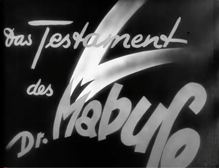 The Testament of Dr. Mabuse from 1933, was a mere two hours in length. Since I was mostly just looking for a certain filmic technique, I opted to watch this one, hoping I could spot it in this later version. In this film Dr. Mabuse’s various activities are carried out by a gang of thieves, one of whom is a good guy trying to redeem himself. We never see Dr. Mabuse. He gives his orders from behind a curtain.