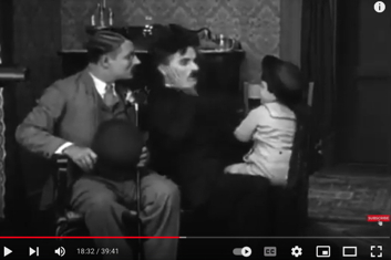 In this scene, The Tramp (Chaplin’s signature character) is an escaped prisoner posing as a minister. He’s been invited to the home of a fine upstanding parishioner where pious friends and family have gathered. Someone’s child of about 3 or 4 is present and has just discovered how much fun it is to slap adults in the face. He plies his new discovery on everyone in the room. They can’t slap back, of course: he’s a child. And as is typical of exhausted and jaded parents, his mommy is ignoring the situation.