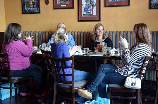 Here's a pic of me talking with a group of bloggers at lunch (I absolutely loved how their eyes lit up when they found a new book they wanted to read! Books are magic!)