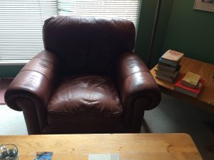 After that I take a break. I come down to my office and perhaps do some administration, or some writing for Quora, or, as today, for my own website. I don’t like to run past 6:00 on my break, for that leaves too little time for the rest of my reading block. I return to my chair (pictured) to read from 2 or 3 more books before Kimmie and I have dinner at 7:00.