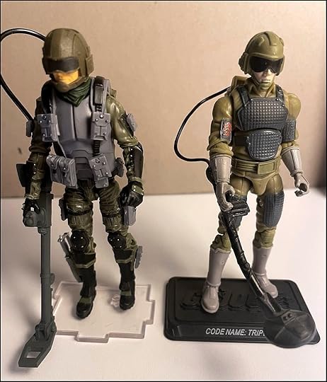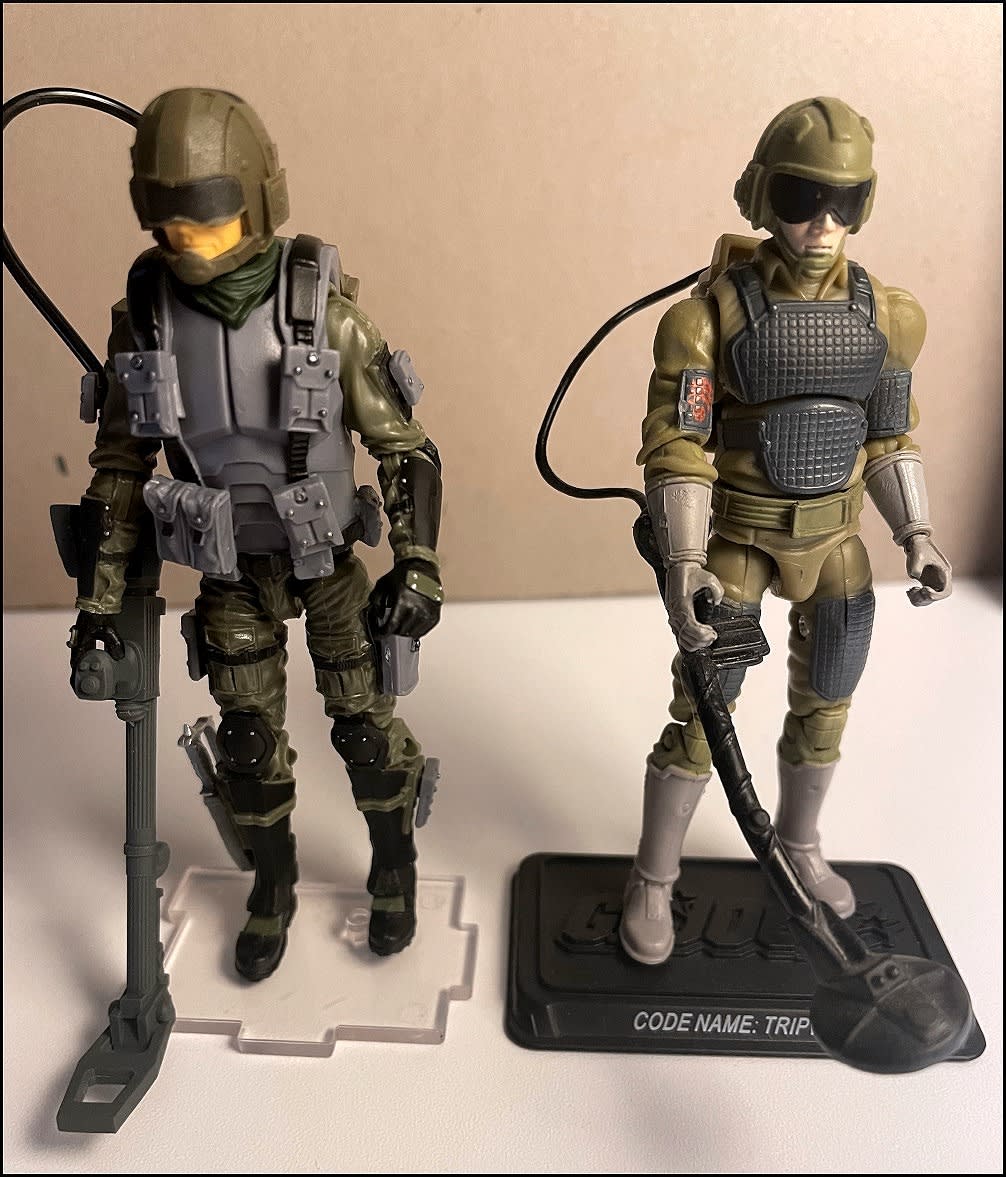 So that’s Tormod S. Skoog on the right and, uh, Skormod T. Toog on the left…The Marauder figure does look fantastic. Granted, it’s more of a hybrid between classic/Real American Hero Tripwire and the more recent bomb disposal/Classified version. The gear components themselves—the pouches, ammo packs, even the knife and pistol—are even all modular.