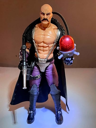 For anyone not a diehard G.I. Joe collector, it’s his monocle. His Mr. Peanut-style monocle. Egads!In my excitement, I popped Dr. Mindbender’s monocle right off his face. It flew… somewhere. Seriously, my home office is a cluttered mess, and it could now be anywhere. Not anywhere I looked, because I never did find it, but anywhere else I suppose. Maybe it’s in one of the fish tanks.4
