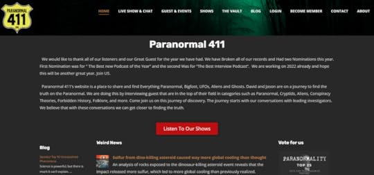 I have had the pleasure of being on Paranormal 411 three times last year. You can find my shows and a list of all the other fascinating guests at Paranormal411.org (click the image above). David and Jason co-host a live show featuring guests and experts in the paranormal, conspiracy theory, UFOs or Unidentified Aerial Phenomena, all things cryptid, and much more!