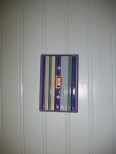 seem like child's play. I bought this switchplate in Durham, North Carolina, at Vaguely Reminiscent in April of 2009. I was spending the day with a fabulous bunch of people I had met online and we were all about to go and see Haven Kimmel and Augusten Burroughs. I bought the switchplate saying to myself, "This is the way I want that bathroom to feel." One year – 20 years – later, I finally screwed it into place. It will remind me daily of that magical trip. But screwing that little thing of beauty to the wall got me thinking.
